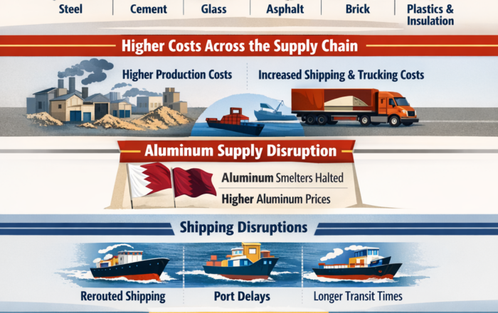 Steel (rebar, structural steel, studs) Risk level: Very high Steel is one of the most exposed materials because: Steel production is energy-intensive Global steel markets react quickly to shipping disruptions Tariffs and supply constraints are [...]